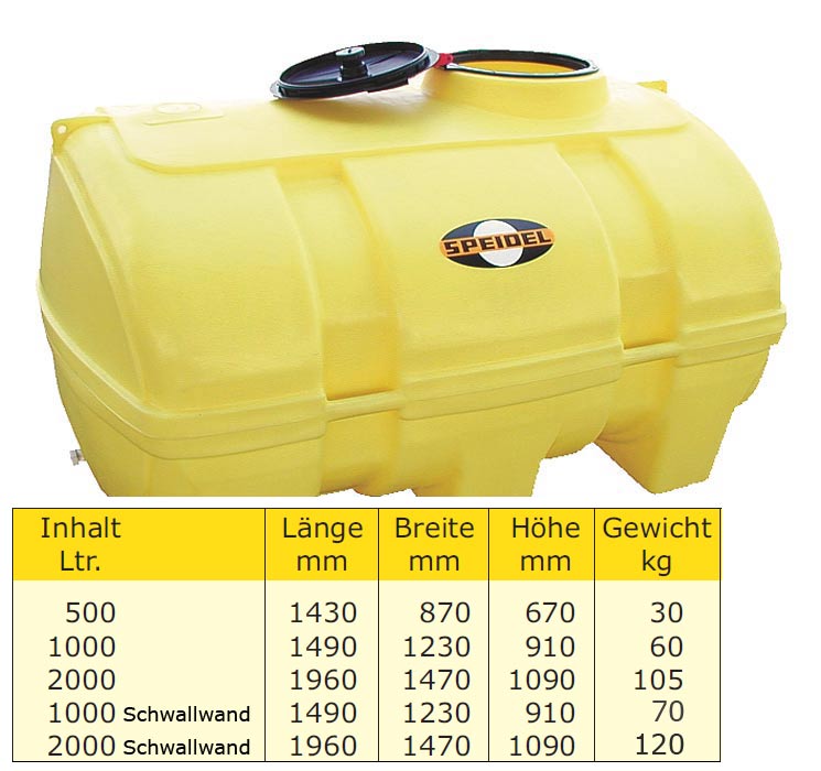 Der Behälter besteht aus hochwertigem, UV-beständigem und recyclefähigem PE-Material und ist für eine optimale Stabilität besonders dickwandig.Stirnseitig gegenüber der Tanköffnung befindet sich der Auslaufstutzen 2" AG, gegenüber ein Restablaufstutzen 3/4" IG verschlossen mit einer Blindkappe.